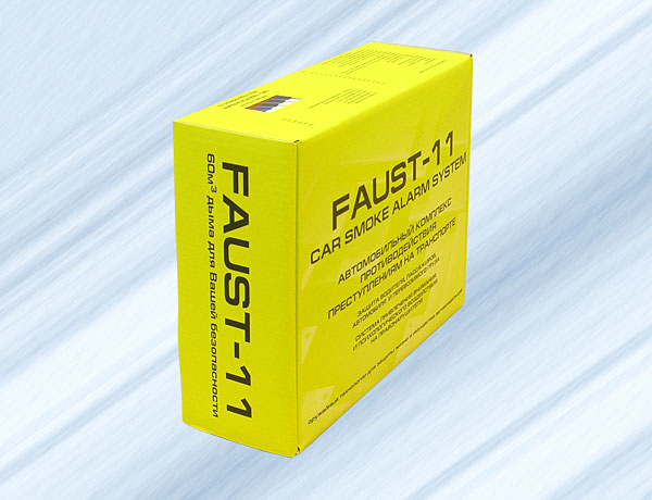 Работа автосигнализации FAUST-11 при защите от угона дает короткое секундное беззвучное предупреждение о начале работы алгоритма защиты. За это время угонщик не успеет завести двигатель и поехать. Автосигнализация сразу заблокирует любую электрическую цепь (до 3-х цепей) с последующим срабатыванием сигнальных дымовых картриджей снаружи автомобиля (белый дым), вытесняющего угонщика из салона дымовым картриджем салона (белый дым) и шумовым картриджем, привлекающим внимание к угону в том числе и в ночное время. Сирена 120дБ, размещенная в салоне окажет звуковое воздействие за гранью болевого порога. Дымовое заполнение салона, сирена, внешние дымовые картриджи, сделают нецелесообразным дальнейшие вандальные действия угонщика по отношению к дорогостоящему оборудованию автомобиля.