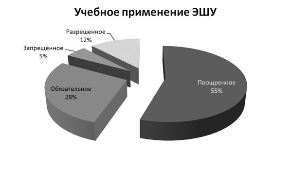 Средней датой ответа на опрос было 18 сентября 2007 года. Средний прирост числа учебных применений ЭШУ составлял 4,62% в год. Это 1,17% за квартал.