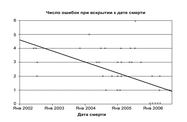 Рис. 24.7. Число ошибок снизилось значительно с 3,5 за вскрытие в 2002-2004 году до 1-2 в 2006
